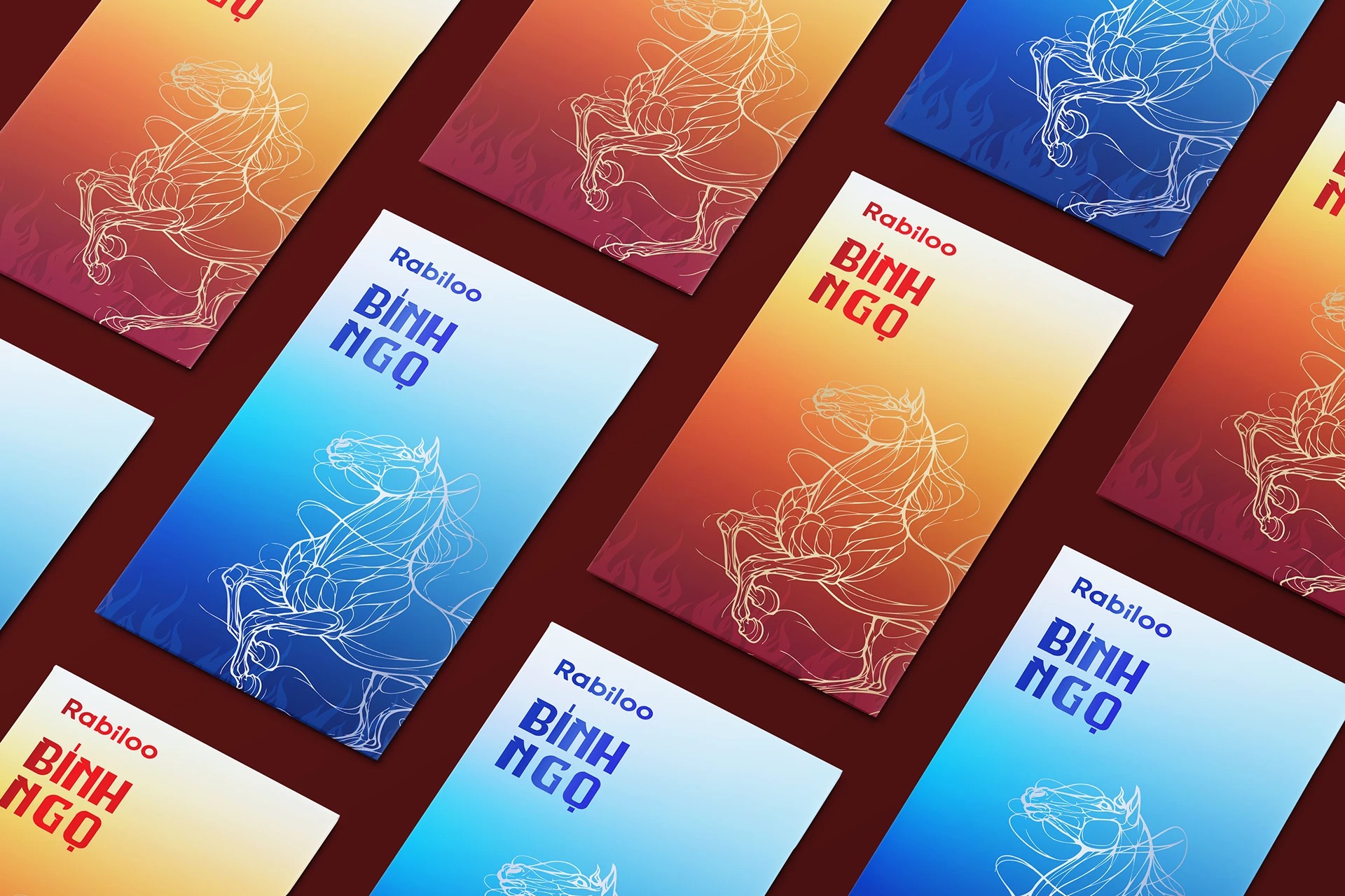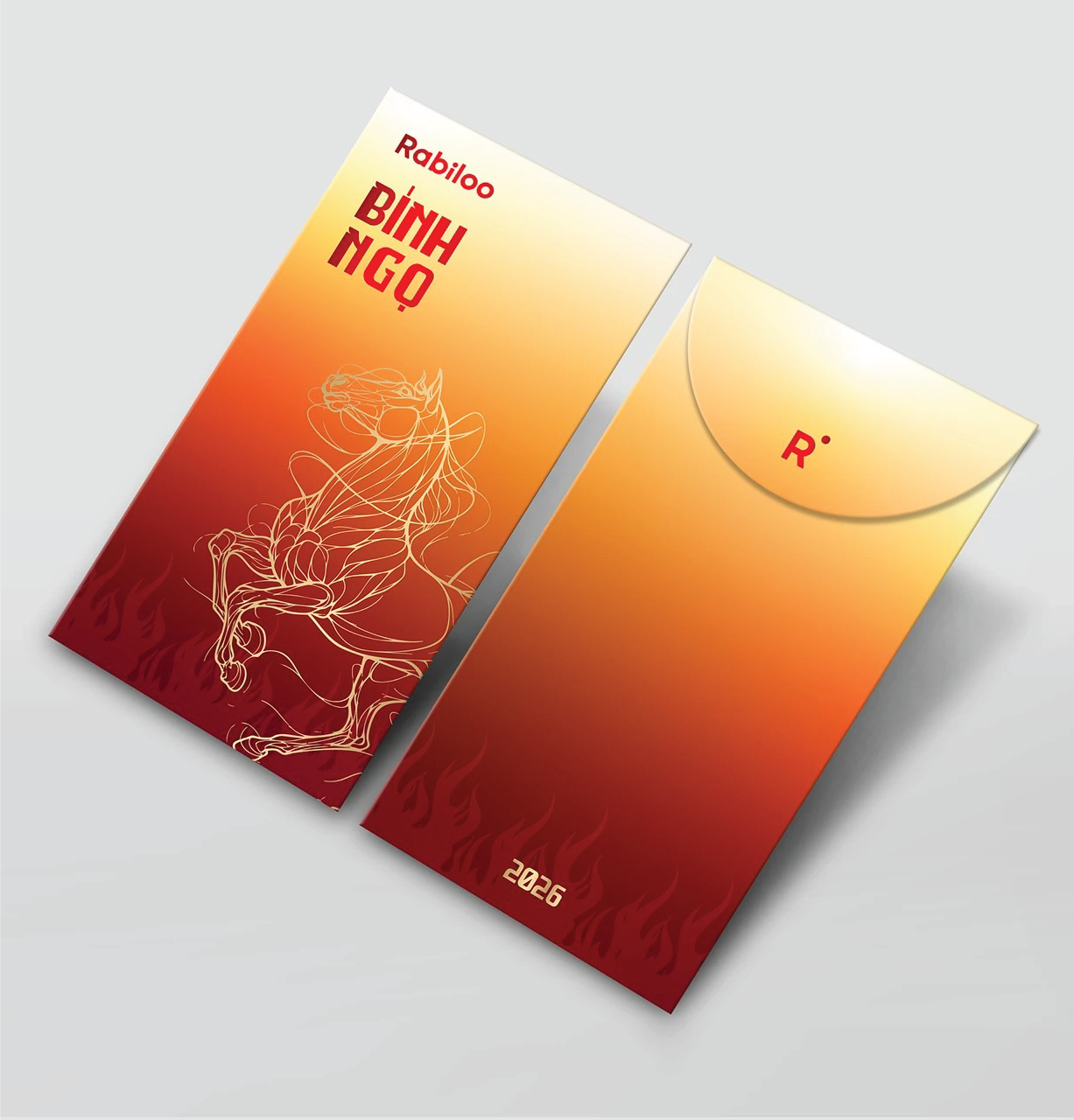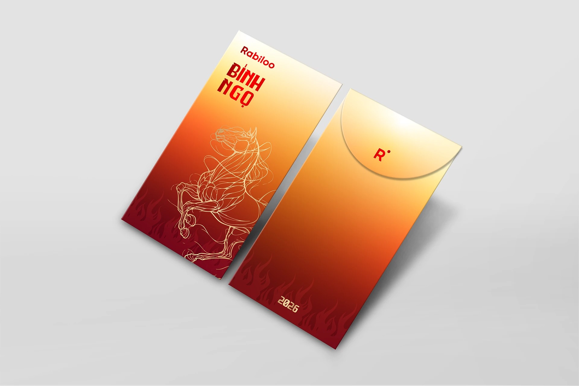 Mẫu bao lì xì Bính Ngọ 2026 từ Rabiloo với chất liệu giấy mỹ thuật cao cấp, kỹ thuật in Offset sắc nét và thiết kế Line-art hiện đại. Khám phá ngay bộ lì xì đẳng cấp cho năm mới thịnh vượng.