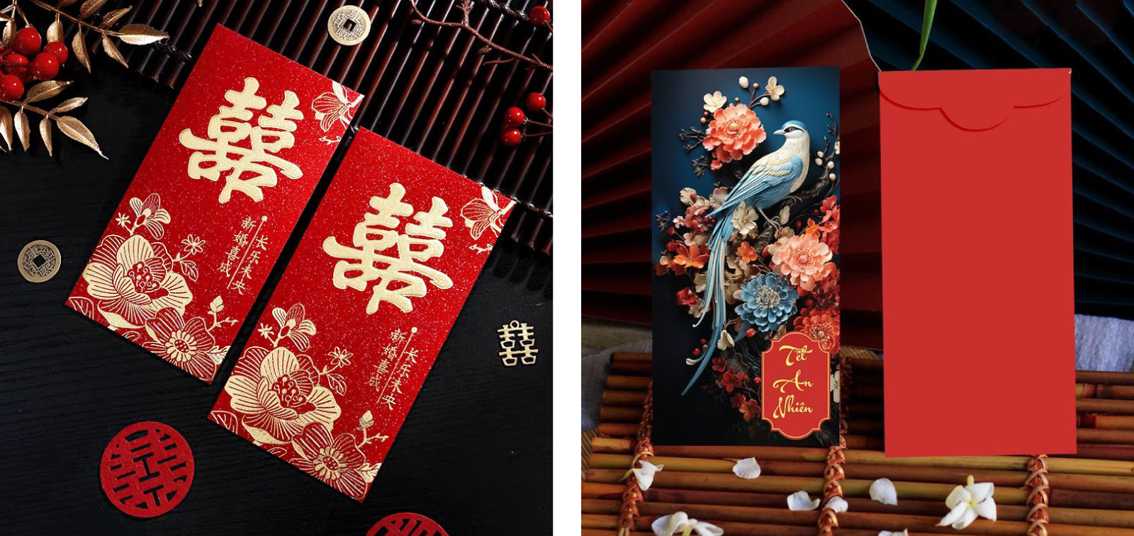 - Chi tiết ánh kim: Ép kim vàng, bạc hoặc nhũ giúp bao lì xì nổi bật và sang trọng.