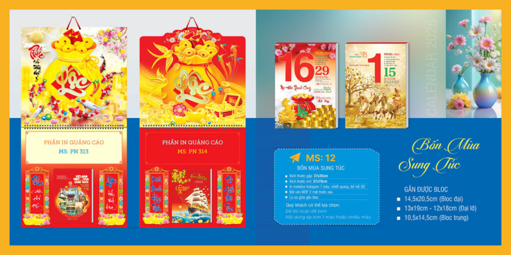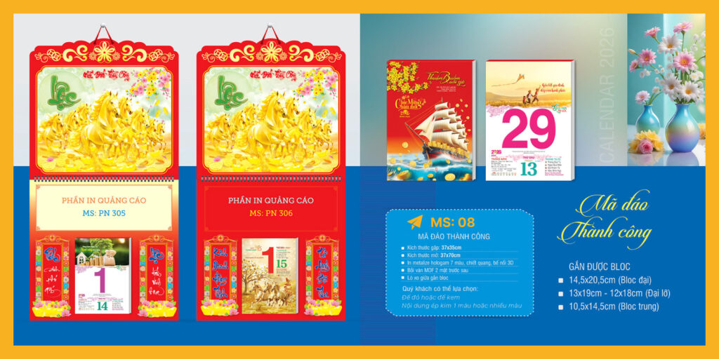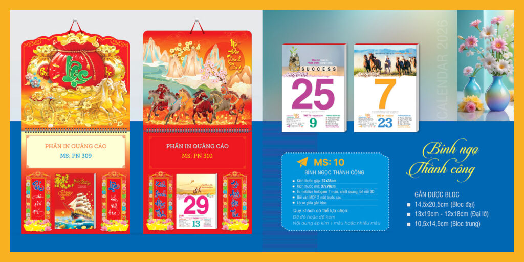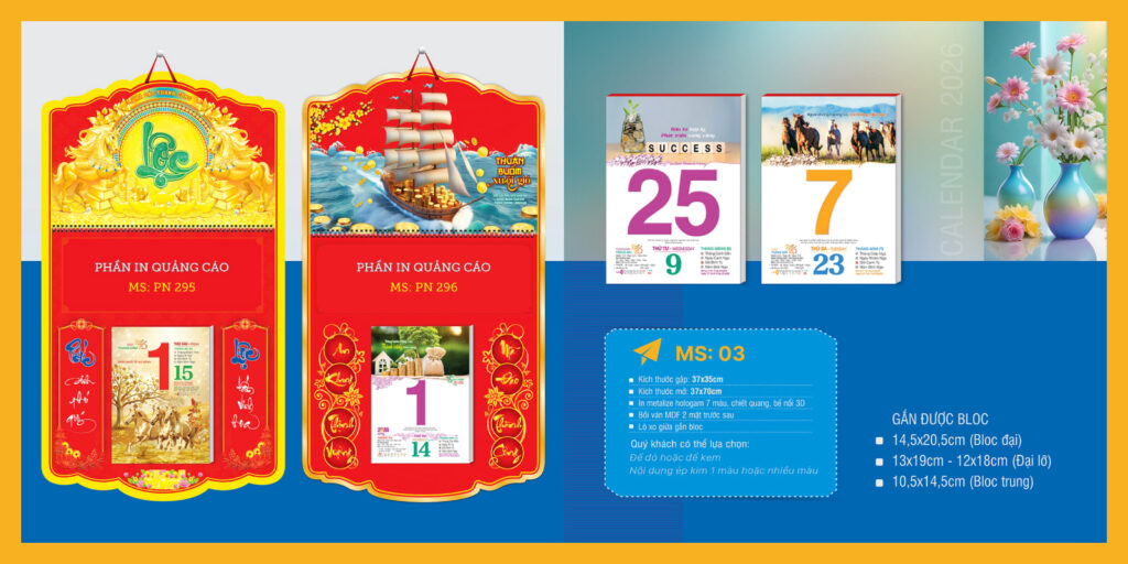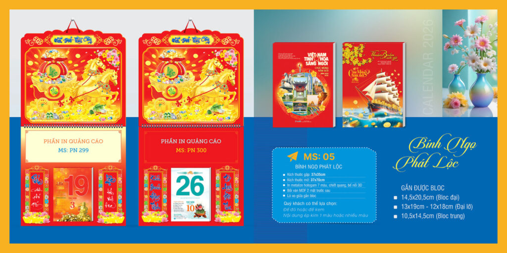 Bìa Lịch Bloc 2025 – Bìa Lịch Lò Xo Giữa