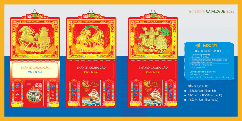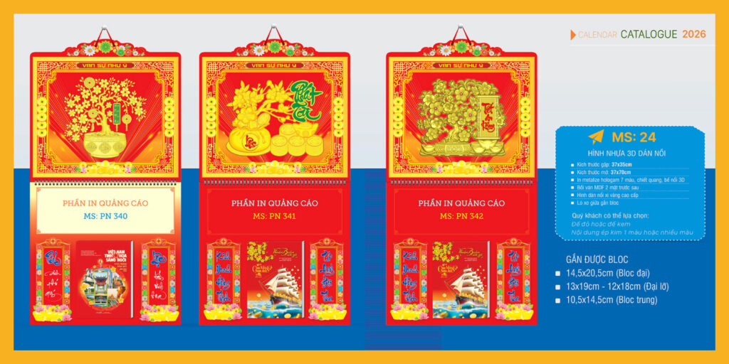 Bìa Lịch Bloc 2025 – Bìa Lịch Dán Nổi Hình 3D