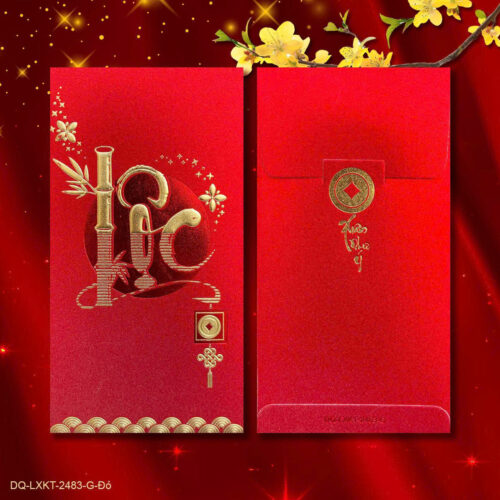 Bao lì xì đại giấy kim tuyến dập nổi là dòng sản phẩm cao cấp được nhiều khách hàng lựa chọn nhờ khả năng tạo điểm nhấn tinh tế ngay từ cảm giác chạm. Kỹ thuật dập nổi giúp các chi tiết như chữ chúc Tết, hoa văn hoặc logo được nâng lên khỏi bề mặt giấy, mang lại chiều sâu thị giác rõ rệt và cảm giác sang trọng khi cầm trên tay.