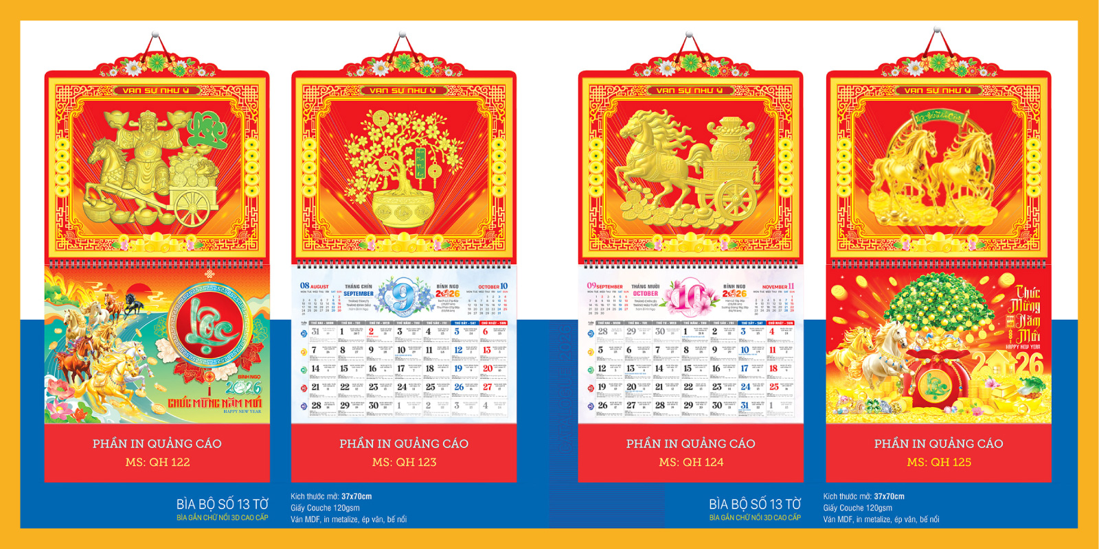 Trong dịp Tết, lịch 13 tờ 2026 không chỉ là công cụ theo dõi thời gian mà còn là món quà tinh tế, sang trọng. Với thiết kế nổi bật và chất lượng cao, lịch 13 tờ giúp doanh nghiệp và cá nhân tạo ấn tượng mạnh, ghi dấu thương hiệu trong mắt khách hàng, đối tác và người thân.