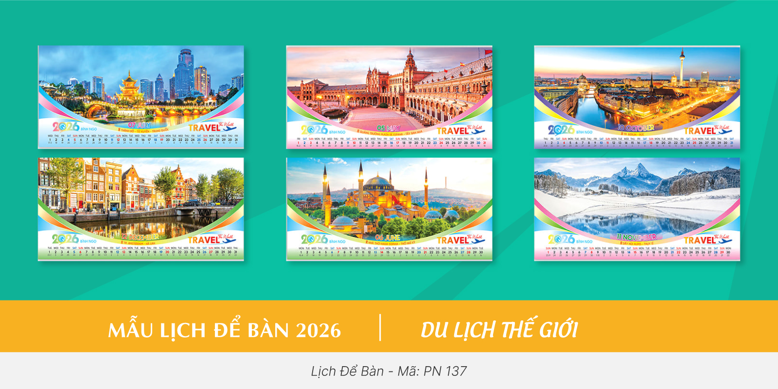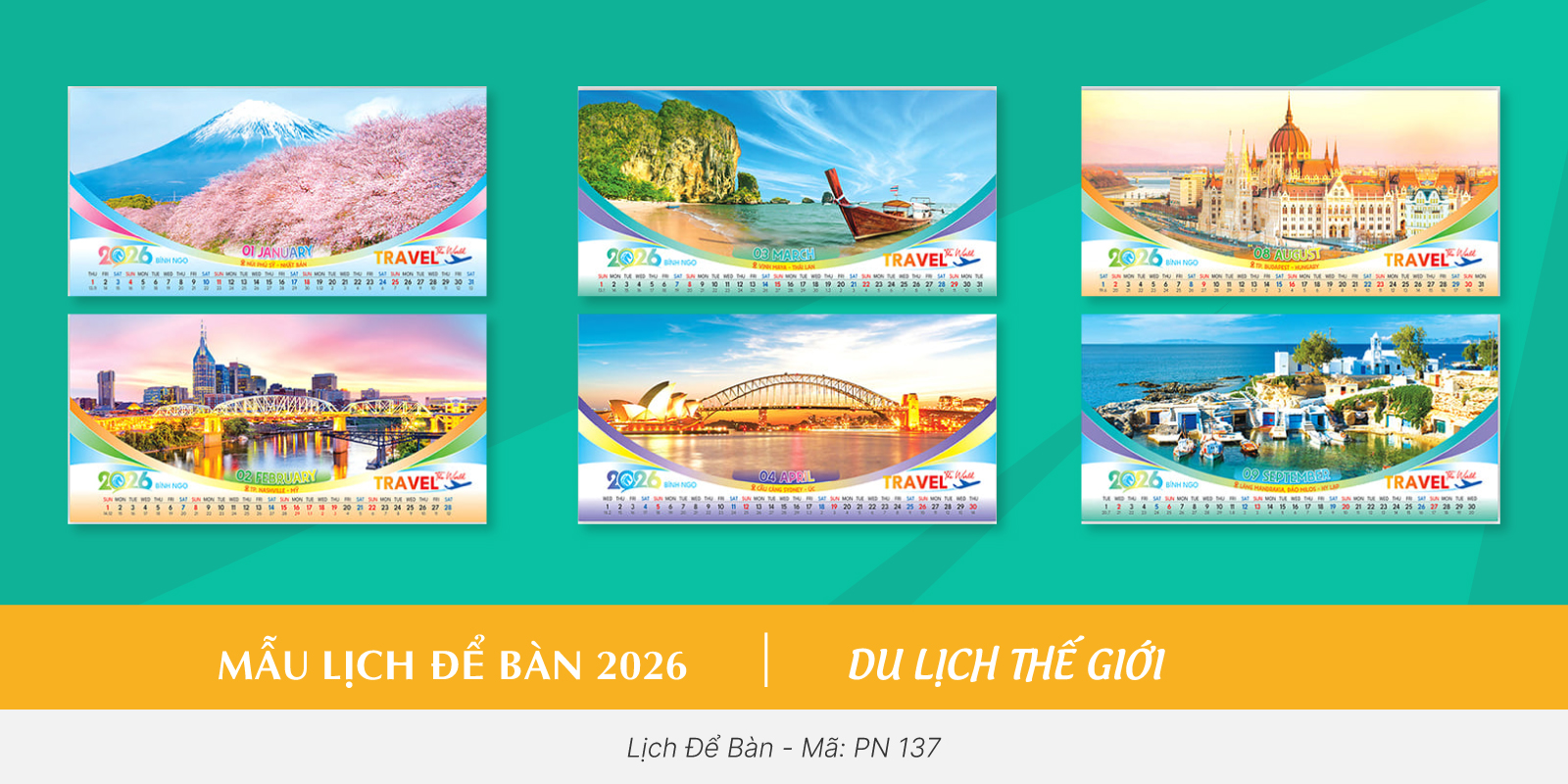 Mỗi chuyến đi là một hành trình trải nghiệm, mở rộng tầm nhìn và lưu giữ những kỷ niệm khó quên. Với chủ đề “Du Lịch Thế Giới”, lịch để bàn 2026 mang đến những khung cảnh tuyệt đẹp từ khắp năm châu, vừa giúp quản lý thời gian, vừa truyền cảm hứng khám phá và tận hưởng cuộc sống.