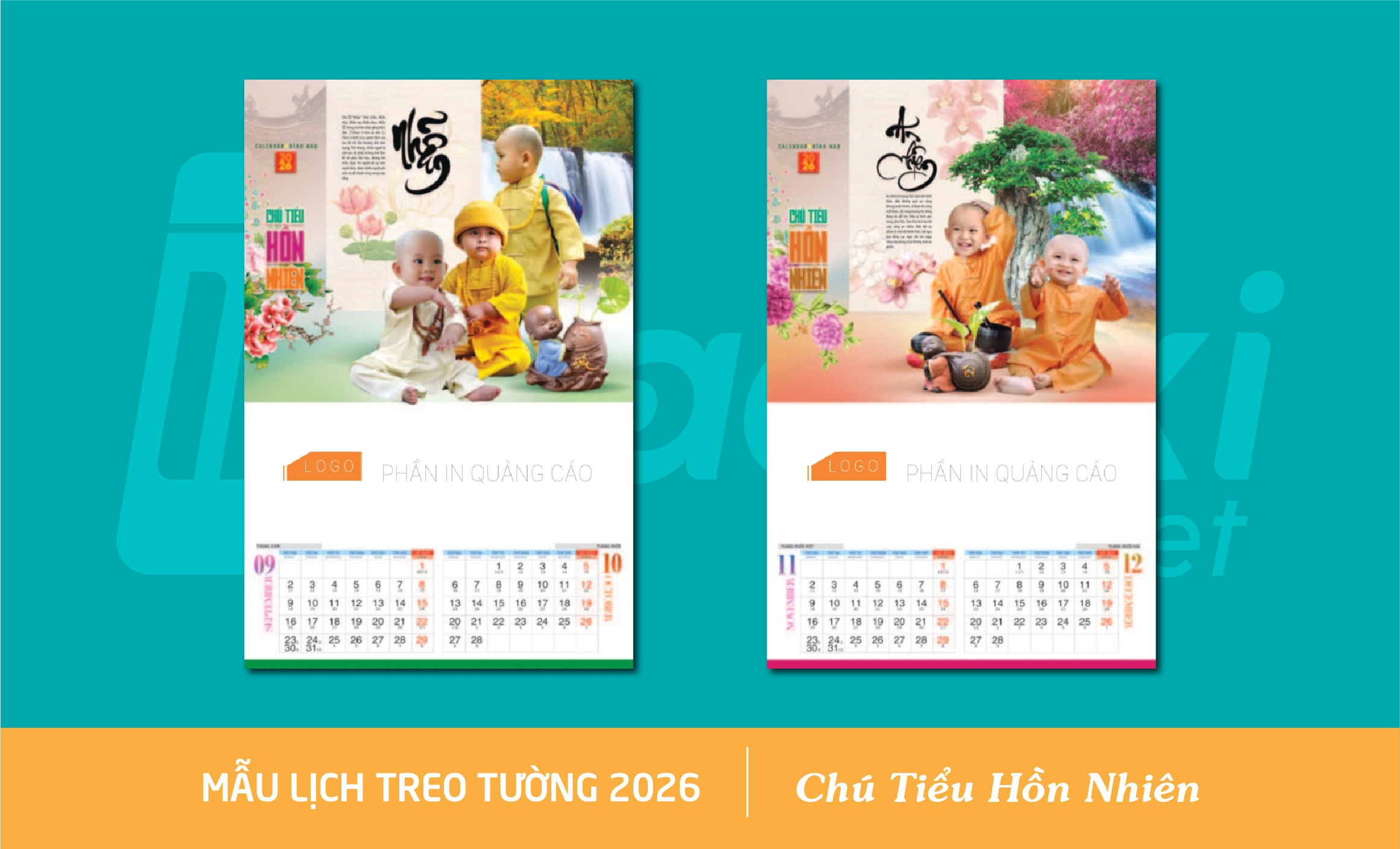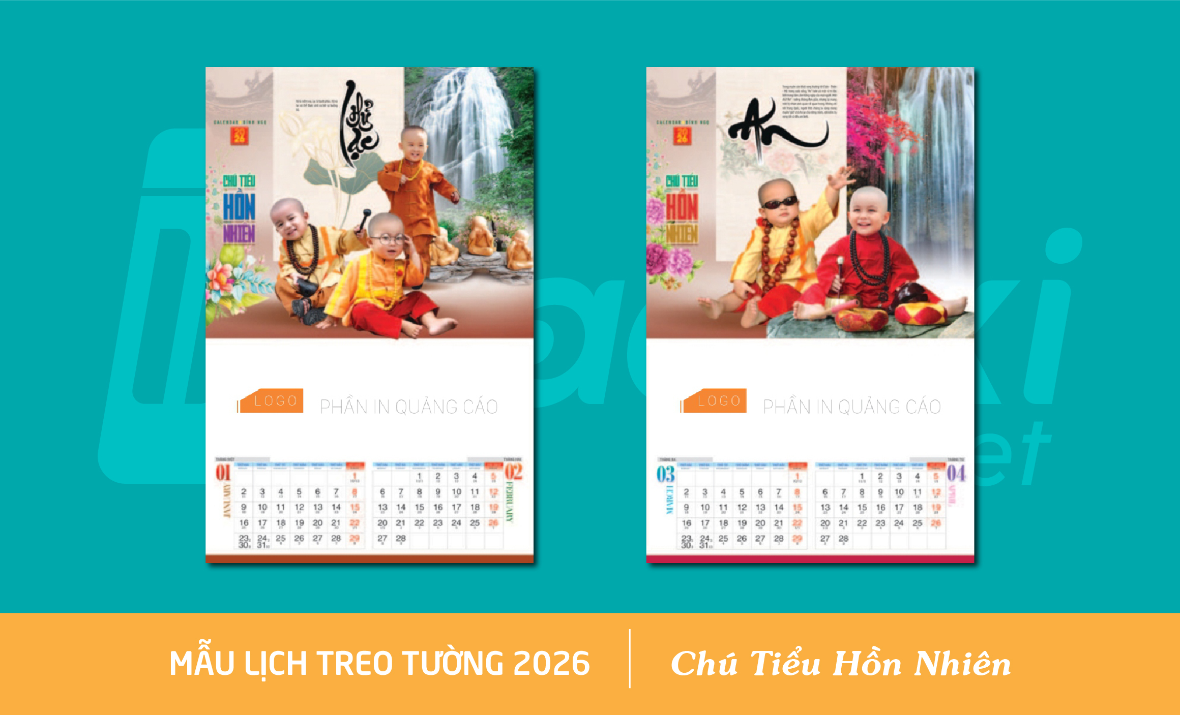 Chúng tôi cung cấp dịch vụ in lịch treo tường Chú Tiểu Hồn Nhiên 2026 với thiết kế độc quyền, chất lượng in sắc nét và giá thành hợp lý. Sản phẩm cam kết vừa đẹp mắt vừa mang lại giá trị tinh thần, thích hợp làm quà tặng Tết 2026.