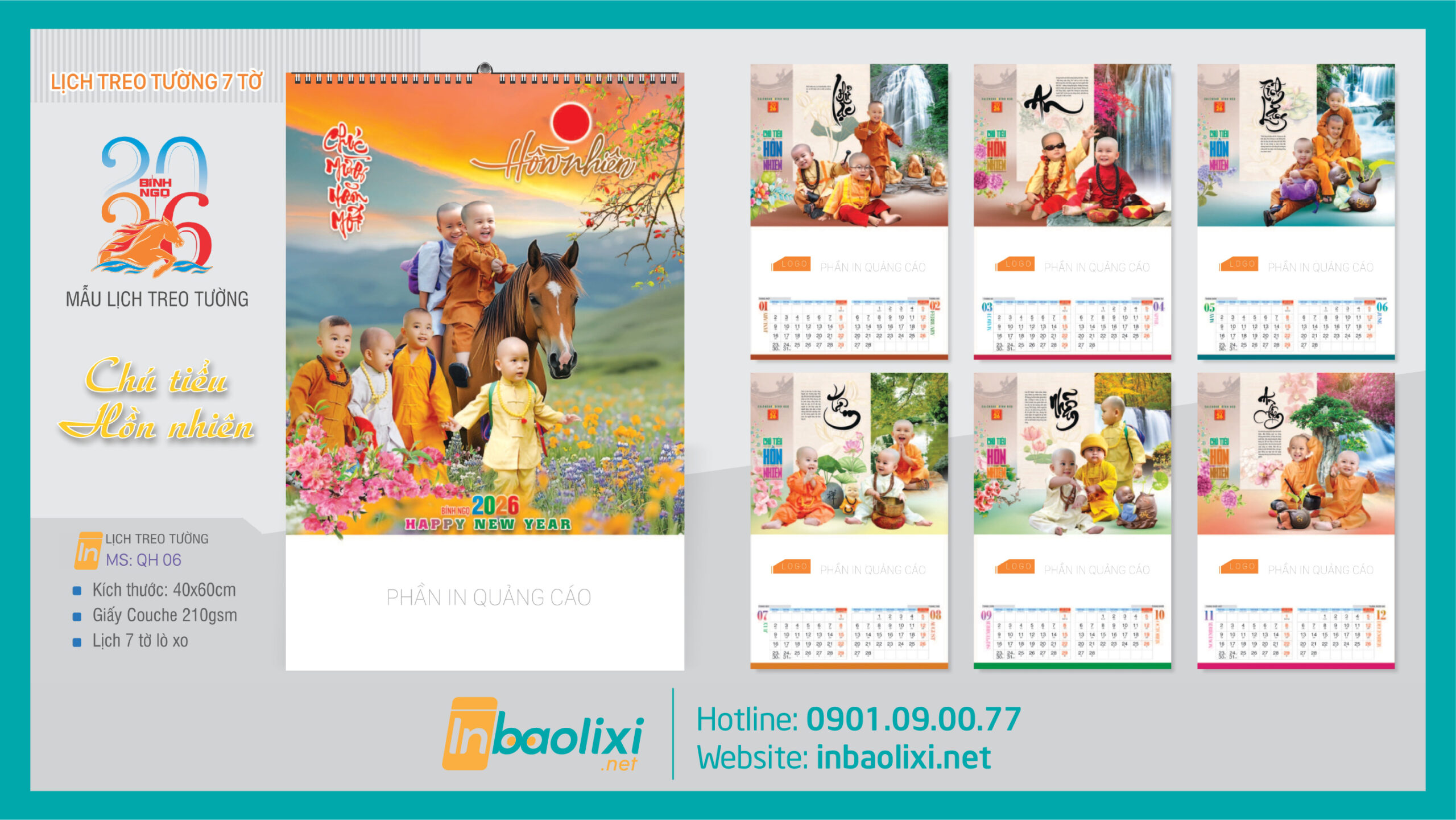 Chúng tôi cung cấp dịch vụ in lịch treo tường Chú Tiểu Hồn Nhiên 2026 với thiết kế độc quyền, chất lượng in sắc nét và giá thành hợp lý. Sản phẩm cam kết vừa đẹp mắt vừa mang lại giá trị tinh thần, thích hợp làm quà tặng Tết 2026.
