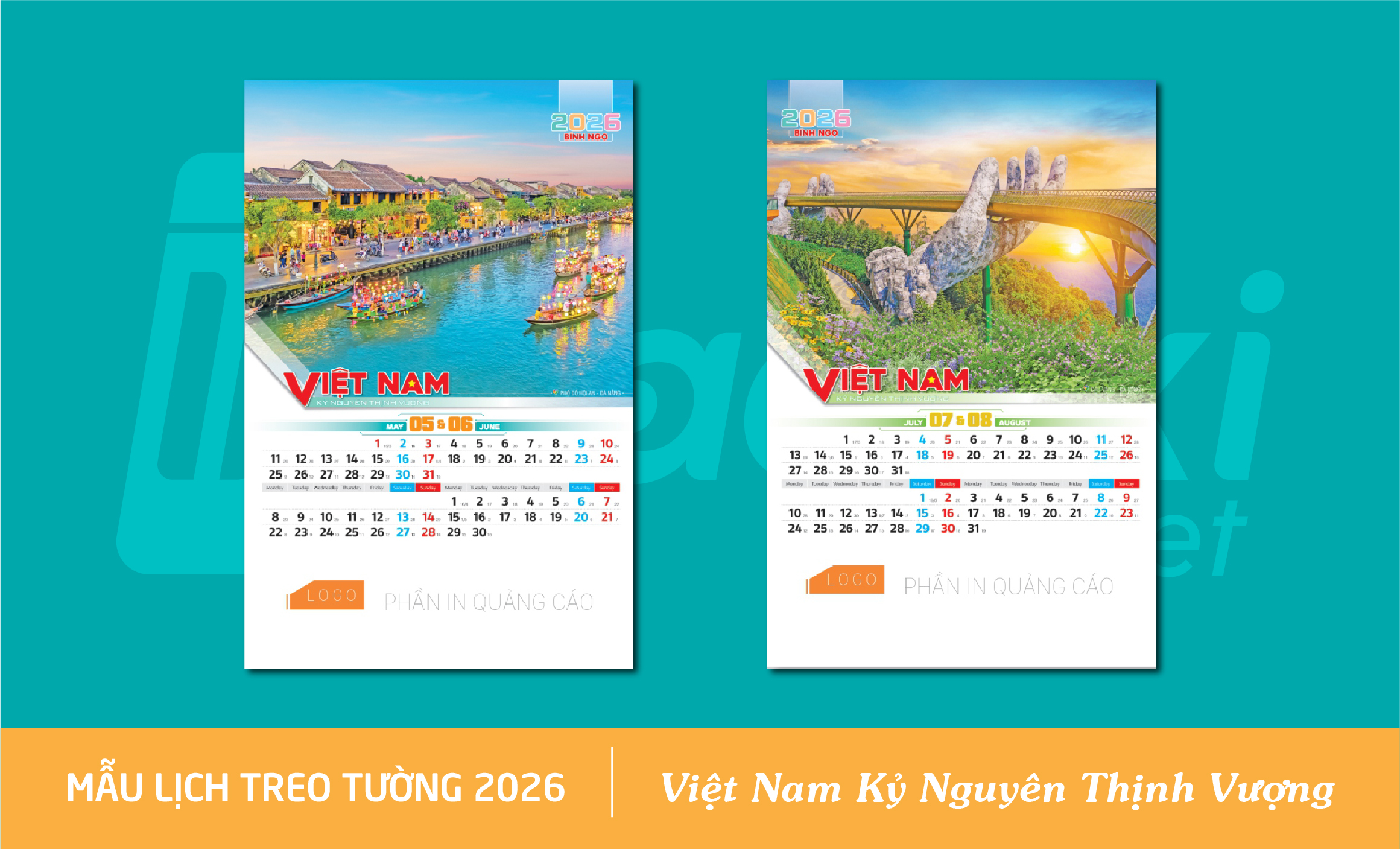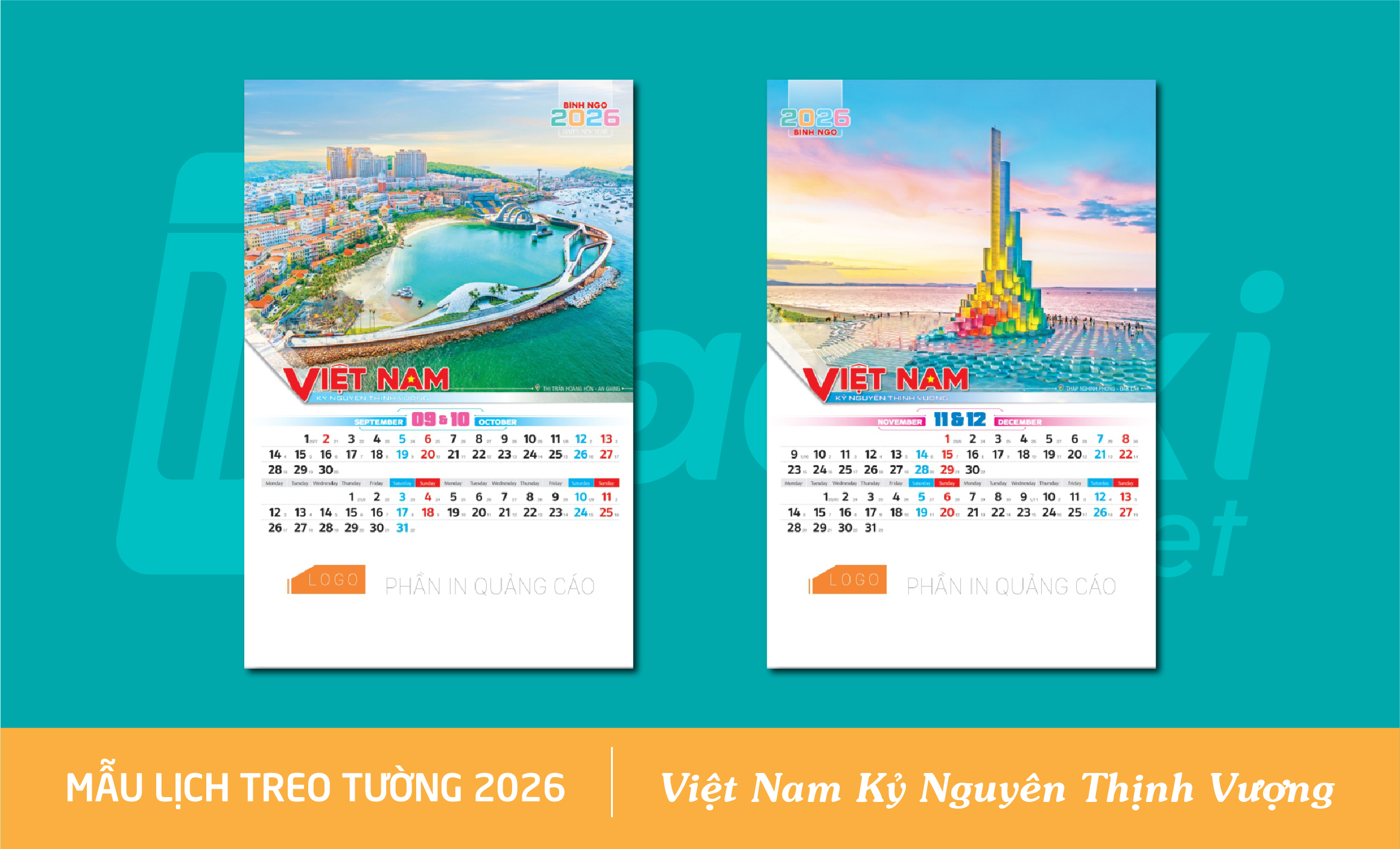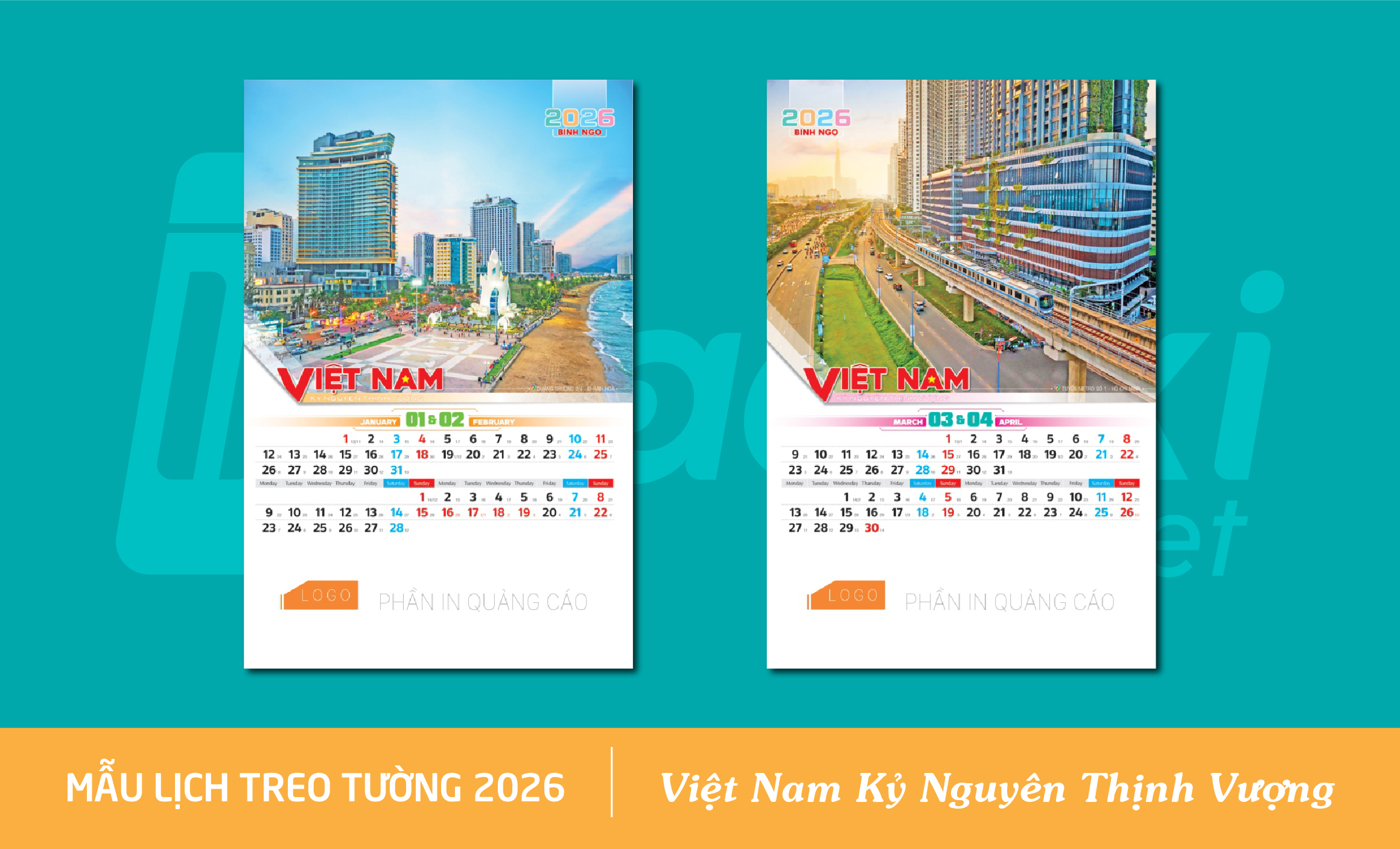Chúng tôi cung cấp dịch vụ thiết kế và in lịch treo tường 2026 với nhiều mẫu độc quyền, thể hiện tinh thần Việt Nam hiện đại và thịnh vượng. Công nghệ in hiện đại, chất liệu chất lượng cao cùng mức giá cạnh tranh sẽ mang đến cho bạn sản phẩm hoàn hảo cả về thẩm mỹ lẫn ý nghĩa.